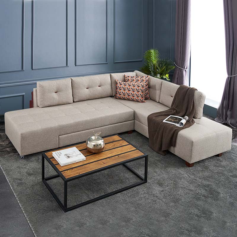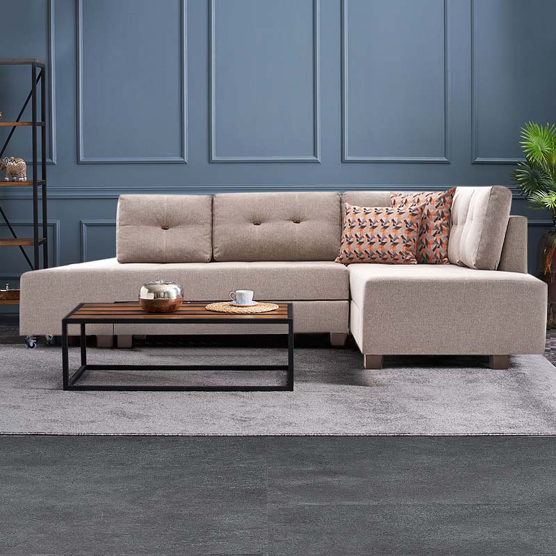 Γωνιακός καναπές Bella Megapap δεξιά γωνία υφασμάτινος χρώμα κρεμ 275x165x85εκ.