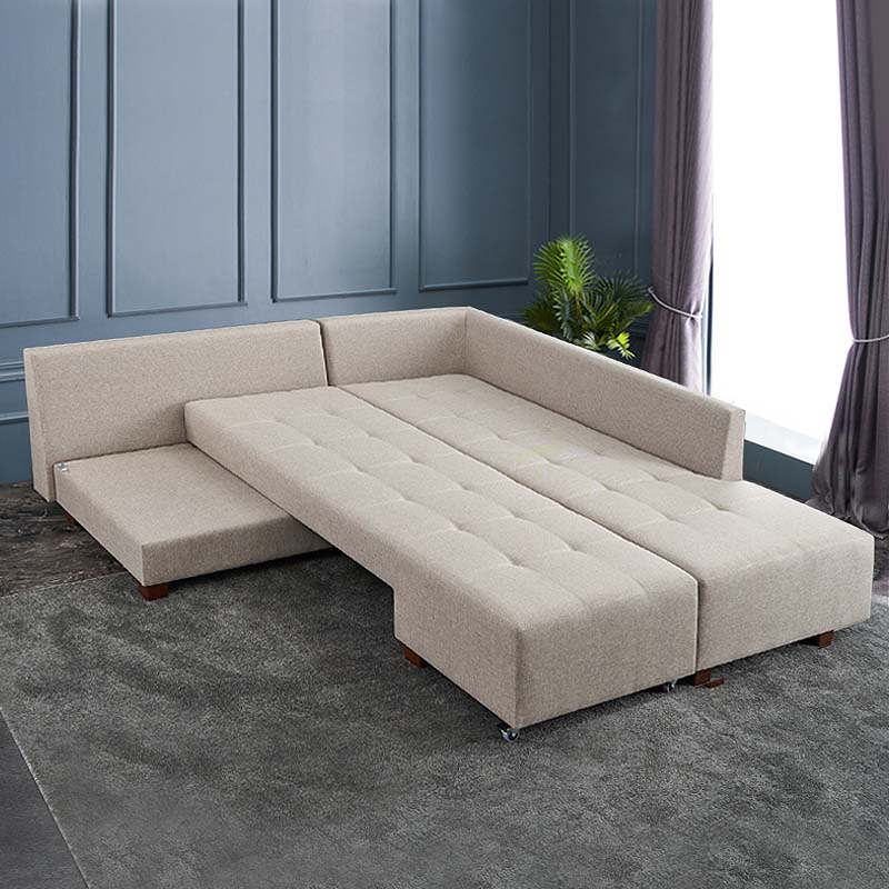 Γωνιακός καναπές – κρεβάτι Manama Megapap δεξιά γωνία υφασμάτινος χρώμα κρεμ 280x206x85εκ.