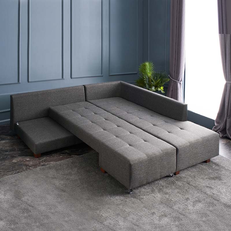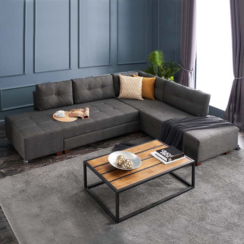 Γωνιακός καναπές – κρεβάτι Manama Megapap δεξιά γωνία υφασμάτινος χρώμα ανθρακί 280x206x85εκ.