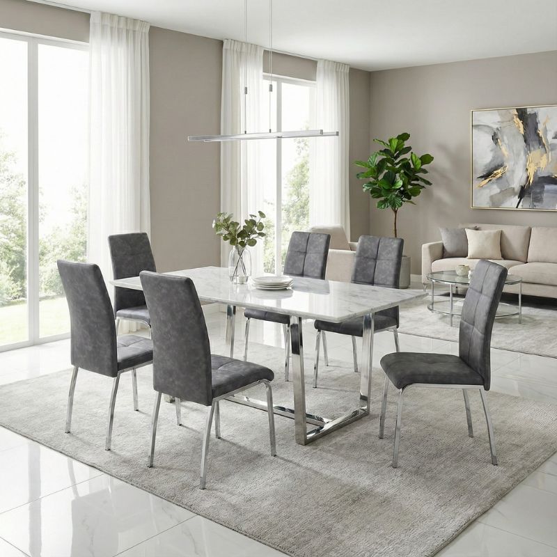 Καρέκλα τραπεζαρίας Alma Megapap γκρι PU – μεταλλικό πόδι χρωμίου 42x53x97εκ.