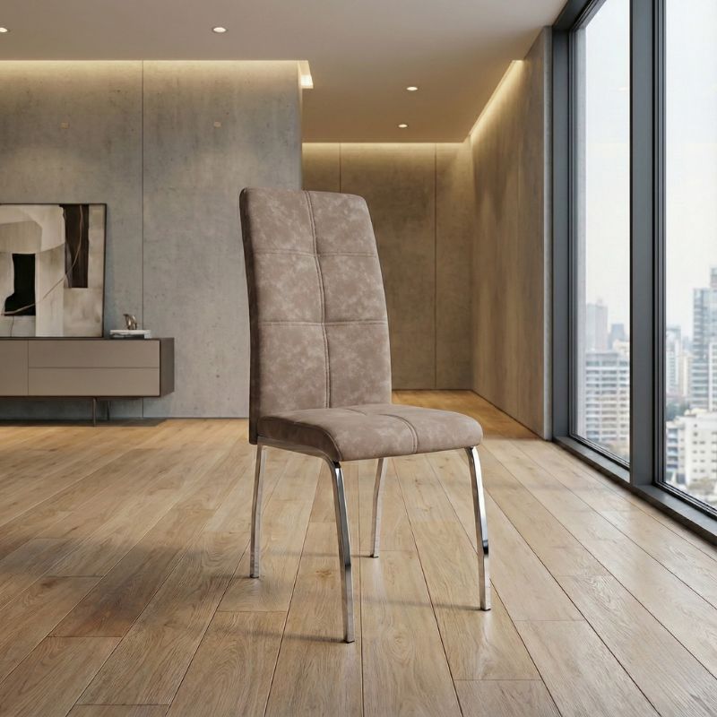 Καρέκλα τραπεζαρίας Alma Megapap μπεζ PU – μεταλλικό πόδι χρωμίου 42x53x97εκ.