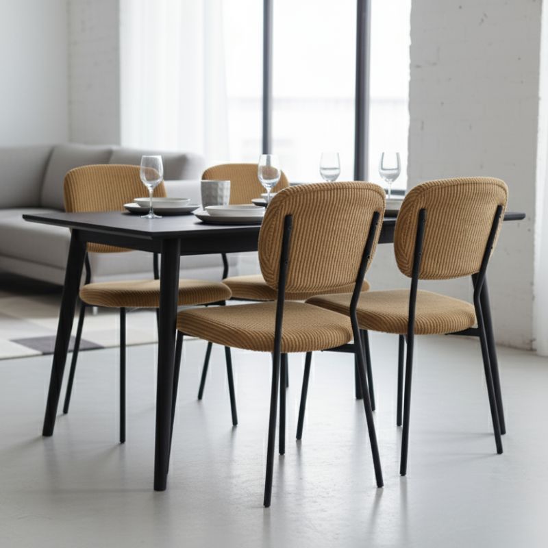 Καρέκλα τραπεζαρίας Kevin Megapap μουσταρδί ύφασμα – μεταλλικό μαύρο πόδι 48x51x87εκ.