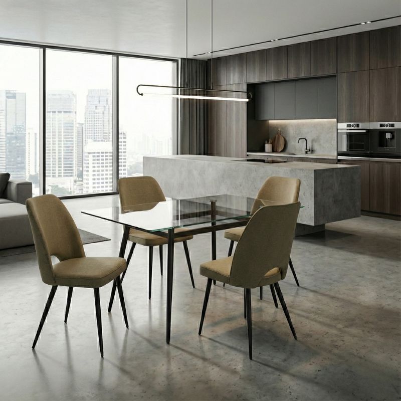 Καρέκλα τραπεζαρίας Kevin Megapap λαδί ύφασμα – μεταλλικό μαύρο πόδι 48x51x87εκ.