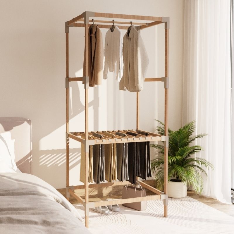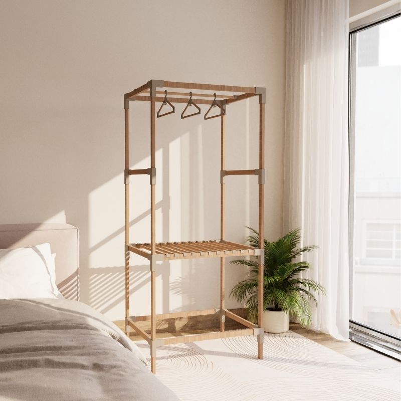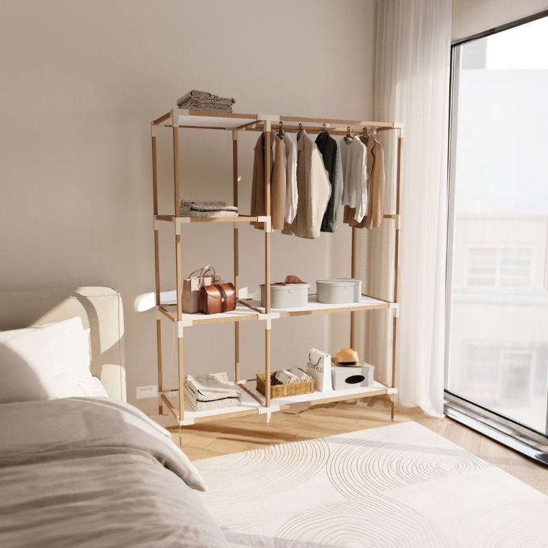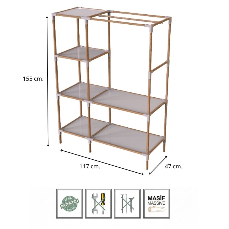 Ντουλάπα ρούχων ανοιχτή – Έπιπλο εισόδου ξύλινο – πλαστικό χρώμα φυσικό – μπεζ 117x47x155εκ.