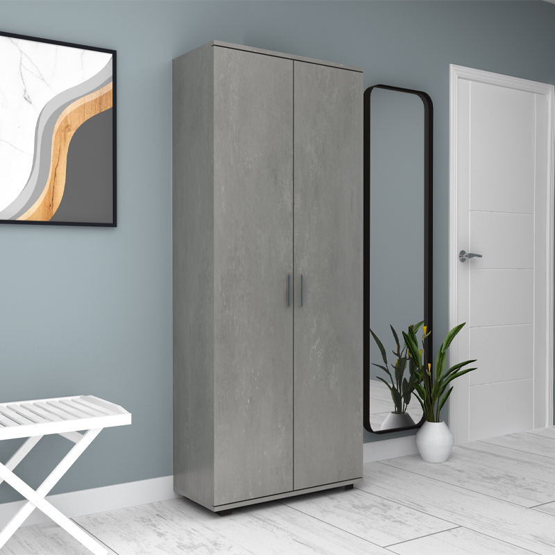 Ντουλάπα ρούχων – παπουτσοθήκη Eric Megapap δίφυλλη χρώμα γκρι σκυροδέματος 76x36x187εκ.