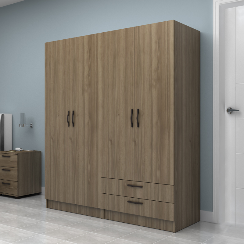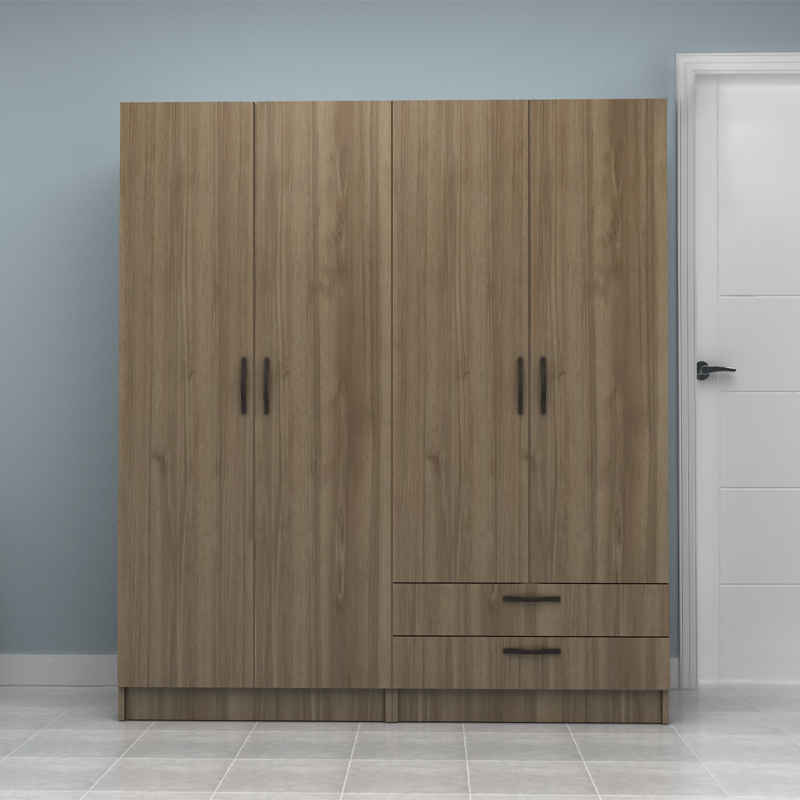 Ντουλάπα ρούχων Vivian Megapap τετράφυλλη με συρτάρια χρώμα καρυδί 160×51,8×181εκ.