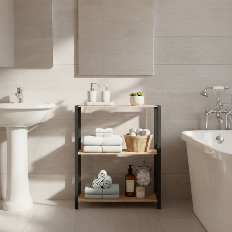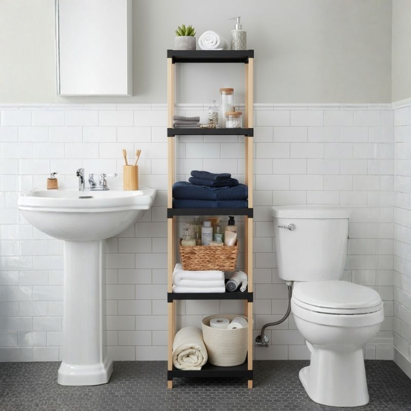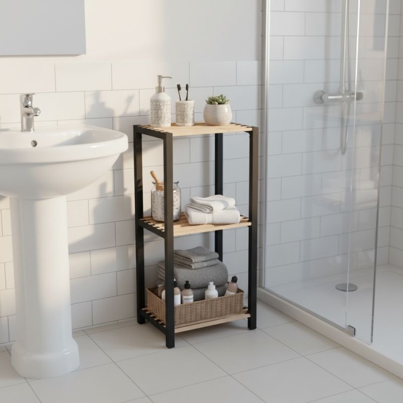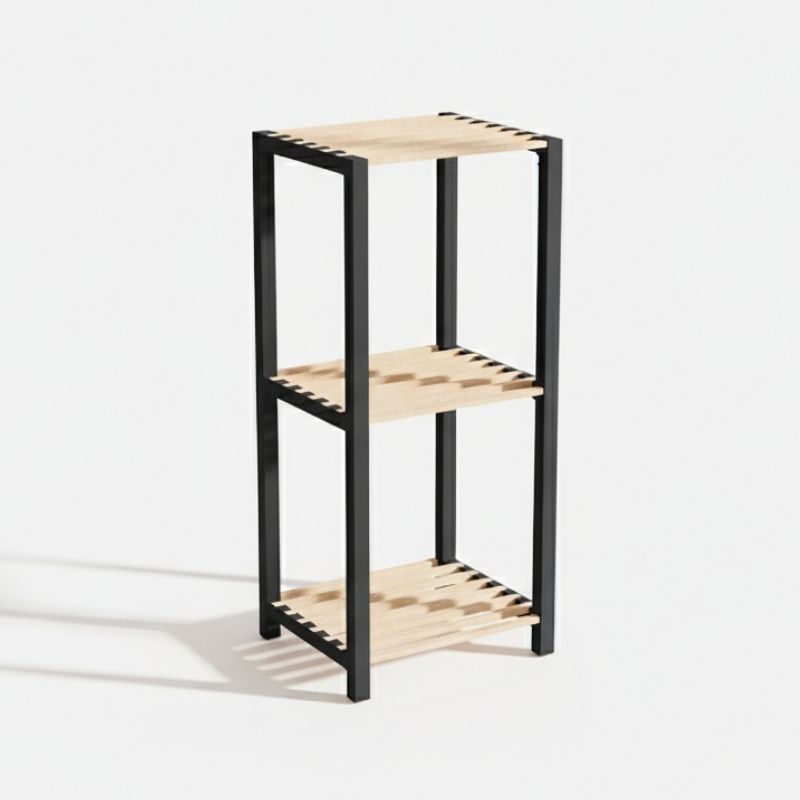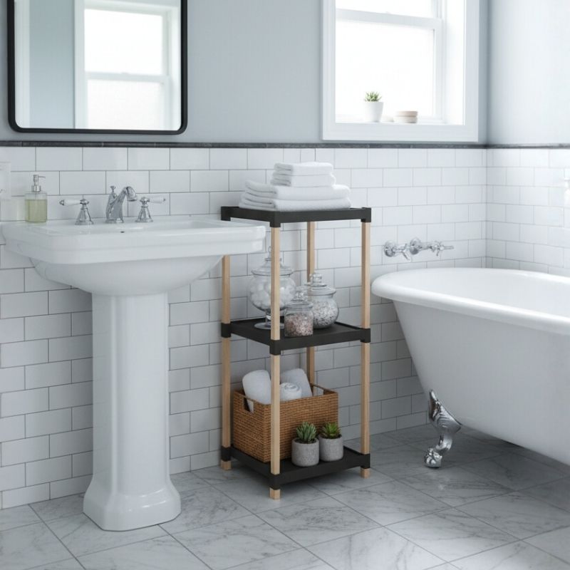 Ραφιέρα δαπέδου πλαστική – ξύλινη χρώμα φυσικό – μαύρο 28x25x72εκ.