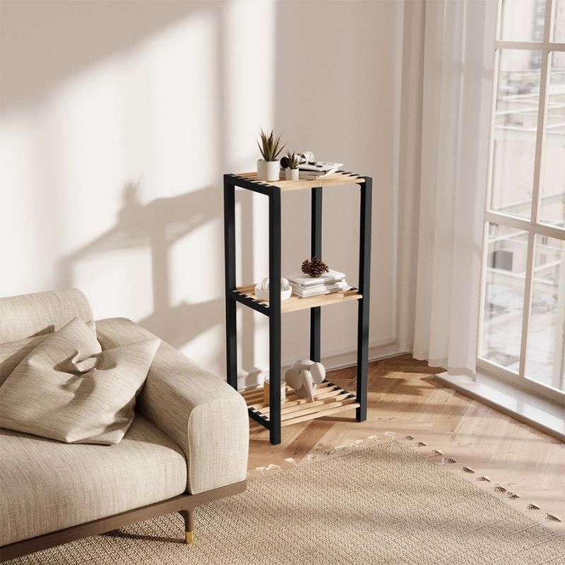 Ραφιέρα δαπέδου – Τραπεζάκι βοηθητικό ξύλινο – πλαστικό χρώμα φυσικό – μαύρο 65x29x78εκ.