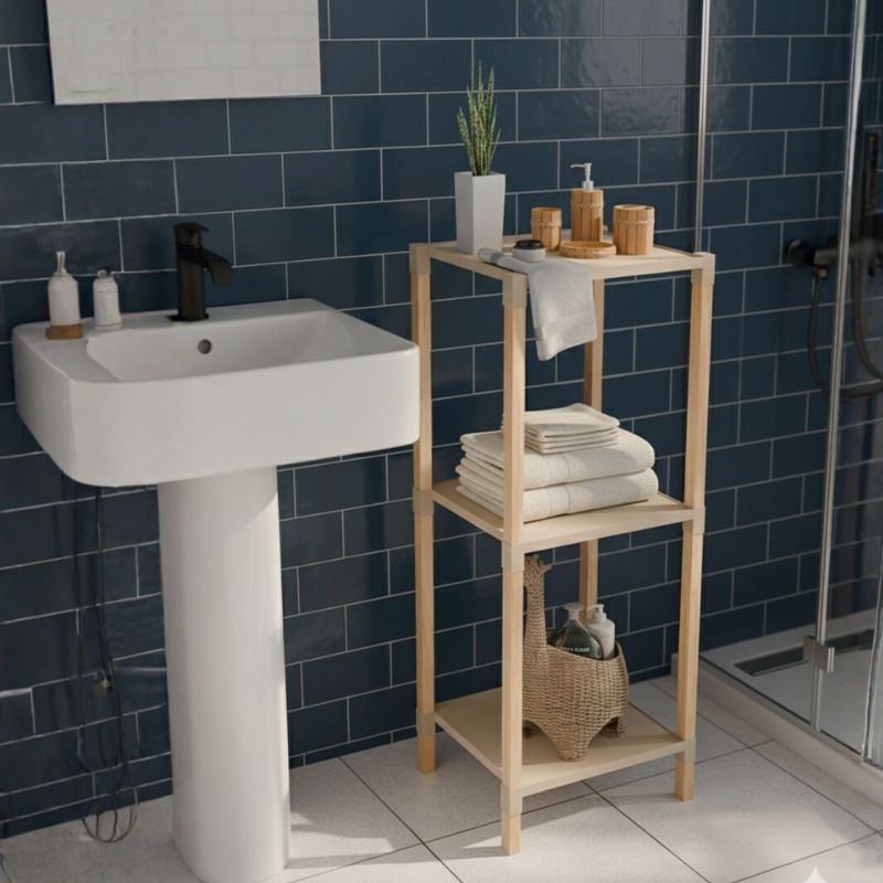 Ραφιέρα δαπέδου πλαστική – ξύλινη χρώμα φυσικό – μπεζ 28x25x72εκ.