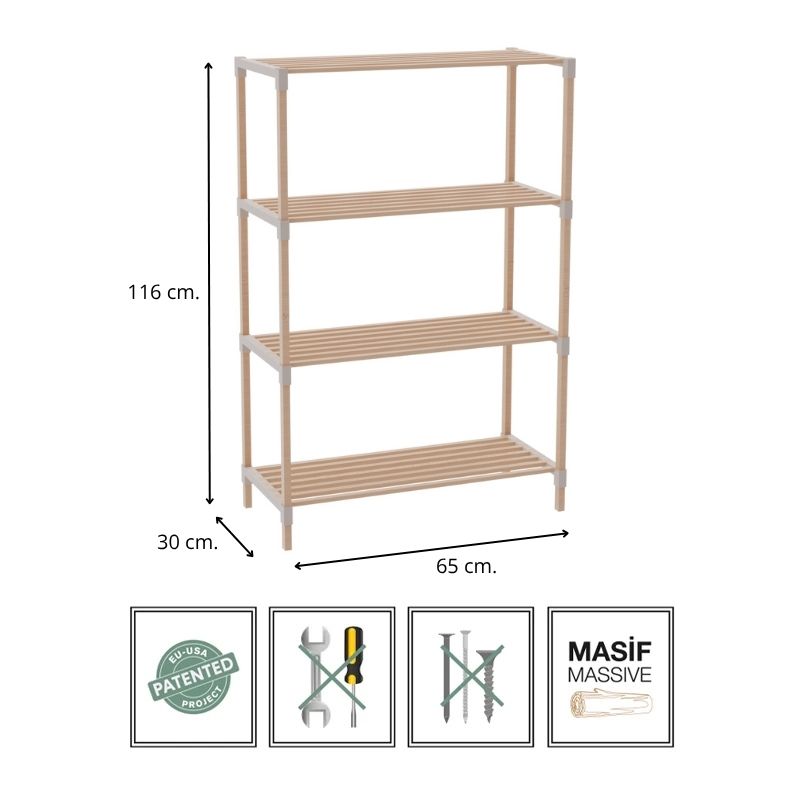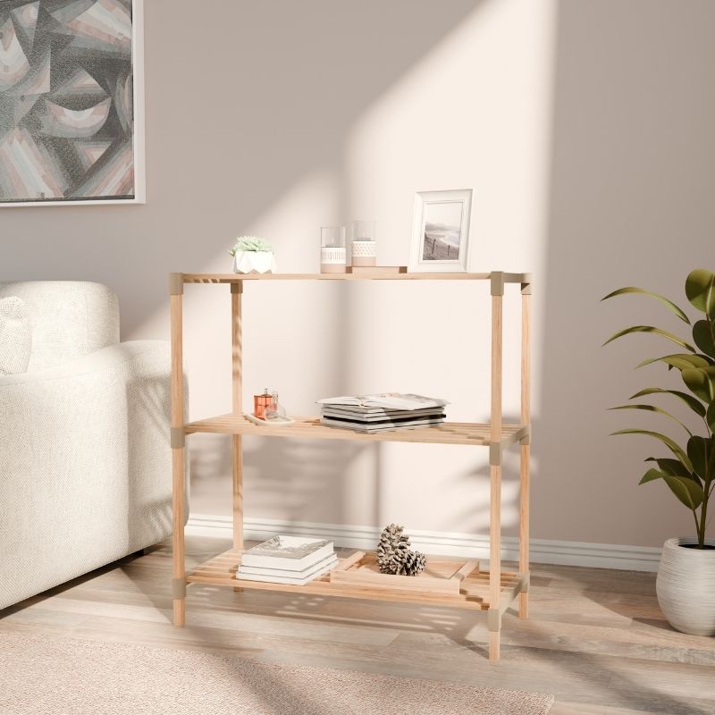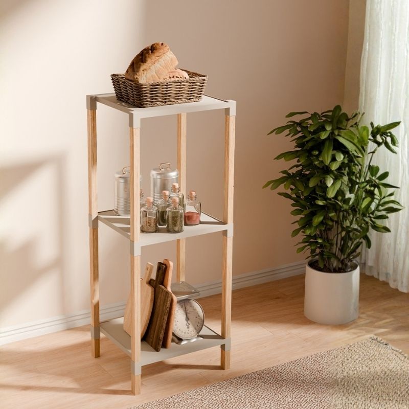 Ραφιέρα δαπέδου ξύλινη – πλαστική χρώμα φυσικό – μπεζ 65x30x116εκ.