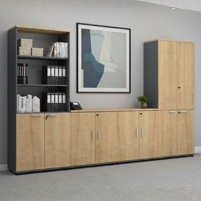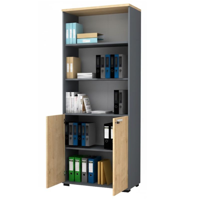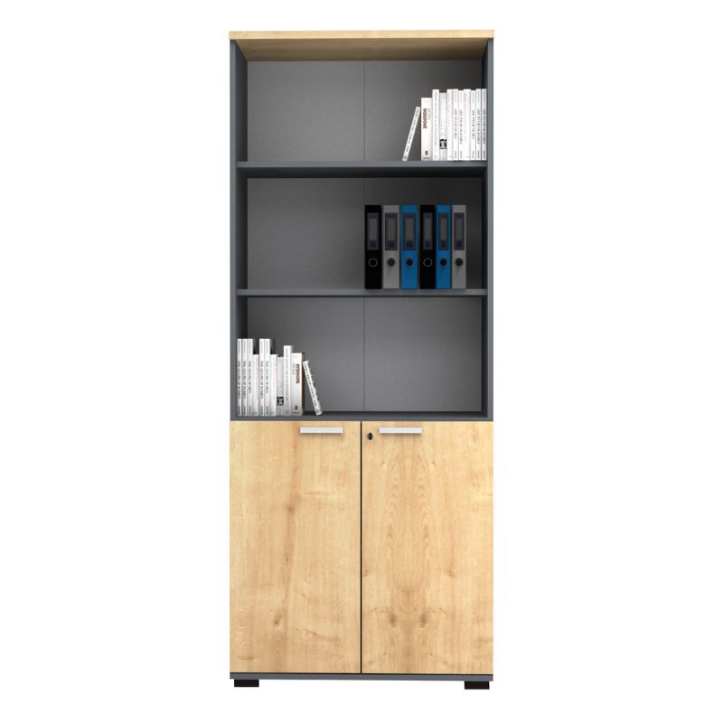 Βιβλιοθήκη γραφείου επαγγελματική Venturo Megapap χρώμα ανθρακί – φυσικό οξιάς 80x40x200εκ.