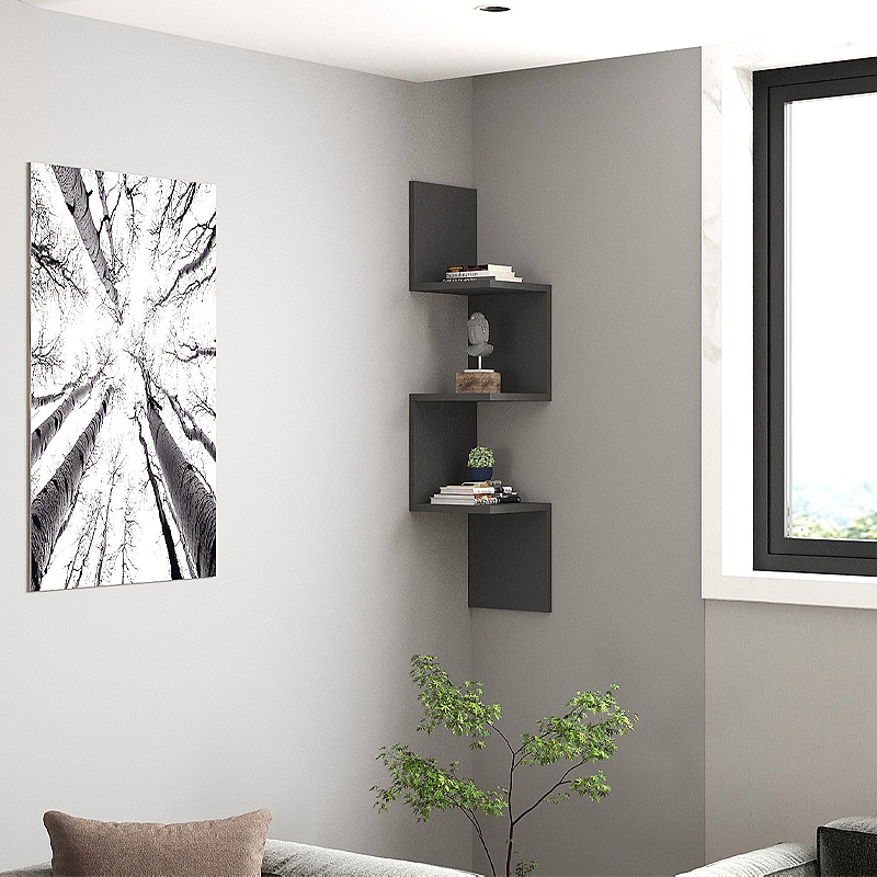 Ραφιέρα τοίχου γωνιακή Zikzak Megapap χρώμα ανθρακί 25x25x105,4εκ.