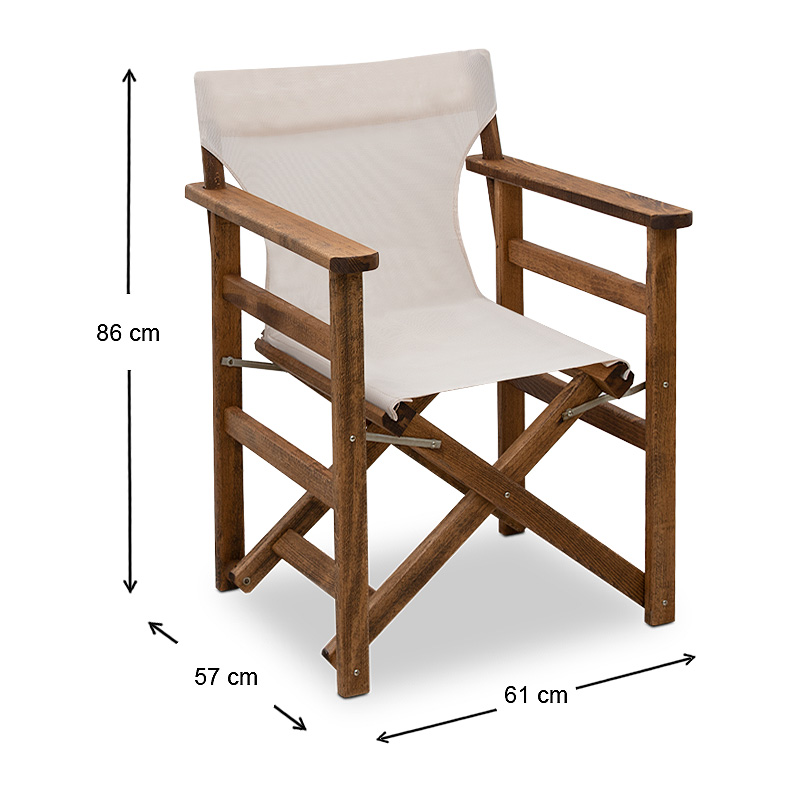 Πολυθρόνα σκηνοθέτη Queen Megapap ξύλινη μασίφ οξιά χρώμα καρυδί εμποτισμού με διάτρητο εκρού πανί 61x57x86εκ.