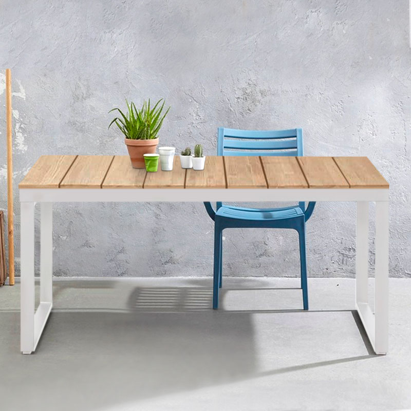 Τραπέζι κήπου Poseidon Megapap μεταλλικό – μασίφ ξύλο χρώμα λευκό – φυσικό 150x82x75εκ.
