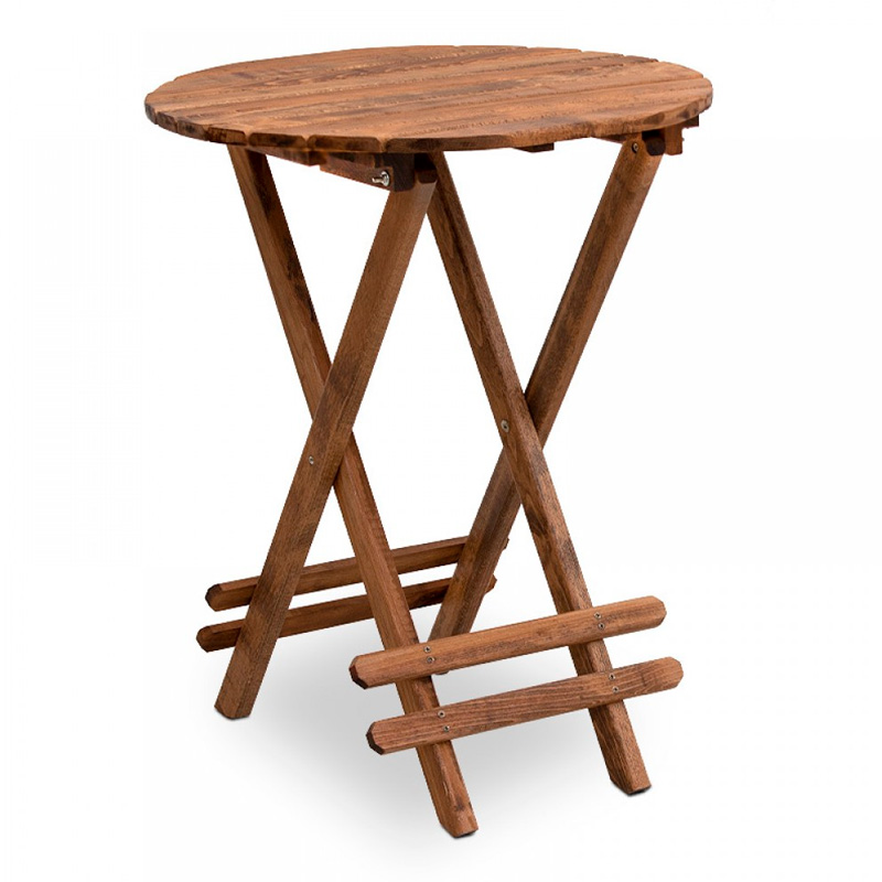 Σετ τραπεζαρία κήπου Queen Megapap ξύλινη τραπέζι Ø60εκ. – πολυθρόνα σκηνοθέτη καρυδί – εκρού πανί S_GP045-0003,1+GP045-0001,1×2