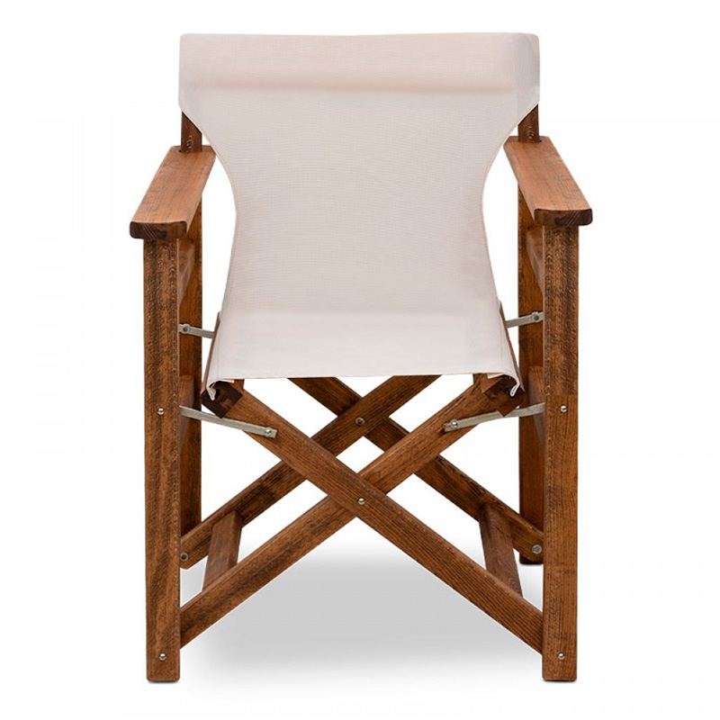 Σετ τραπεζαρία κήπου Queen Megapap ξύλινη τραπέζι 80×60εκ. – πολυθρόνα σκηνοθέτη καρυδί – εκρού πανί S_GP045-0004,1+GP045-0001,1×4
