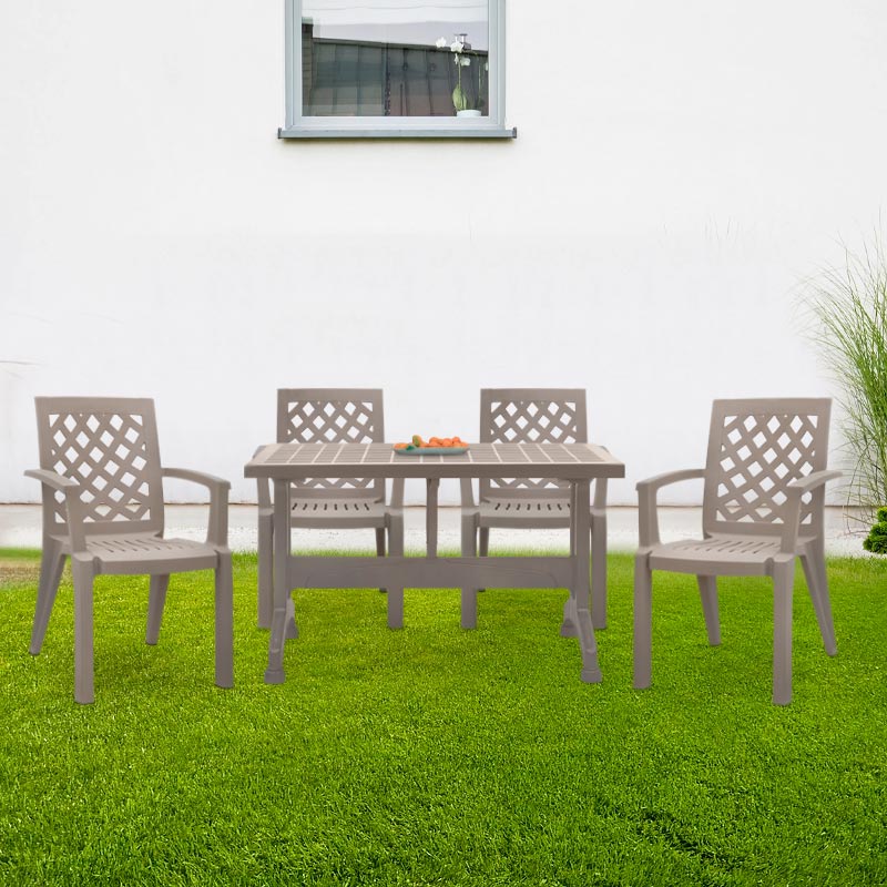 Σετ τραπεζαρία κήπου Callan Megapap 5τμχ πολυπροπυλενίου τραπέζι 140×70 – πολυθρόνα recycled χρώμα cappuccino S_GP046-0003,2+GP046-0001,3×4