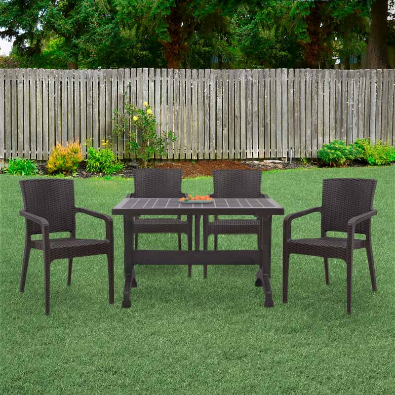 Σετ τραπεζαρία κήπου Callan Megapap 5τμχ πολυπροπυλενίου τραπέζι 140×80 – πολυθρόνα χρώμα καφέ S_GP046-0003,1+GP046-0004,3×4