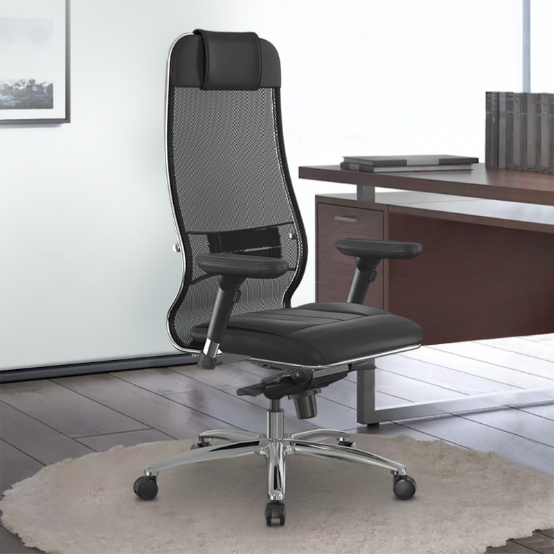Καρέκλα γραφείου Samurai L2-6D Megapap εργονομική με ύφασμα TS Mesh και τεχνόδερμα χρώμα μαύρο 69x70x125/137εκ.
