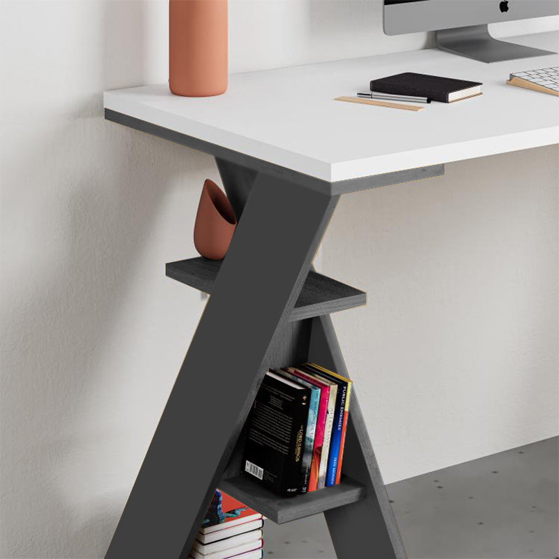 Γραφείο εργασίας Labirent Megapap χρώμα ανθρακί – λευκό 140x60x75εκ