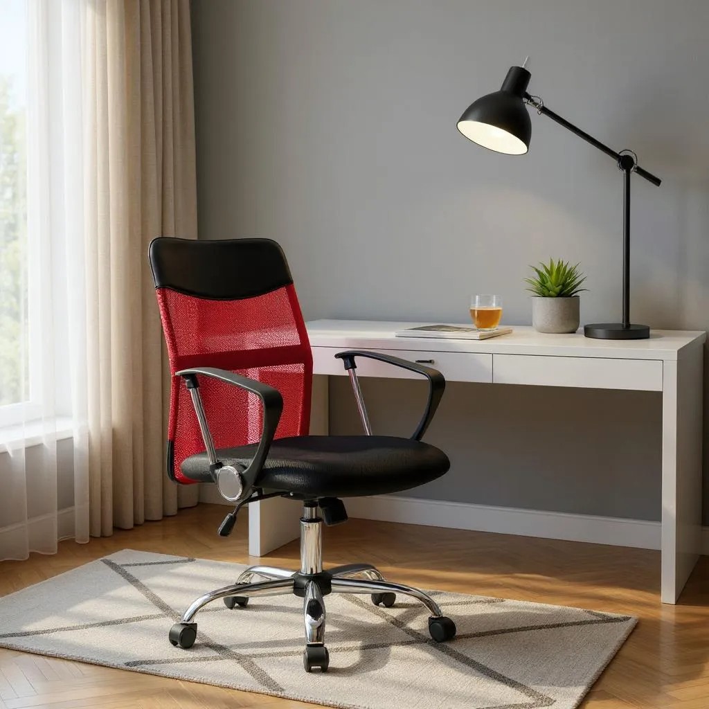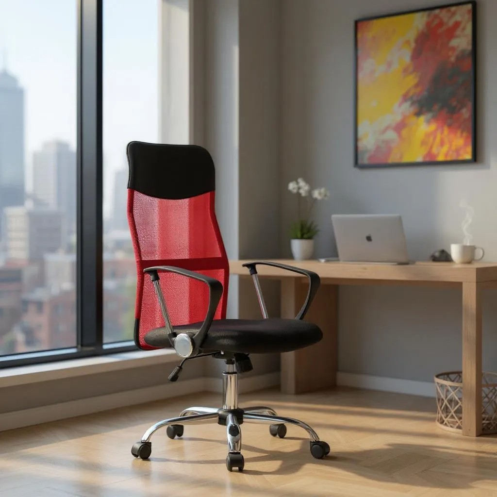 Καρέκλα γραφείου Franco Megapap με ύφασμα Mesh χρώμα κόκκινο – μαύρο 59x57x95/105εκ.