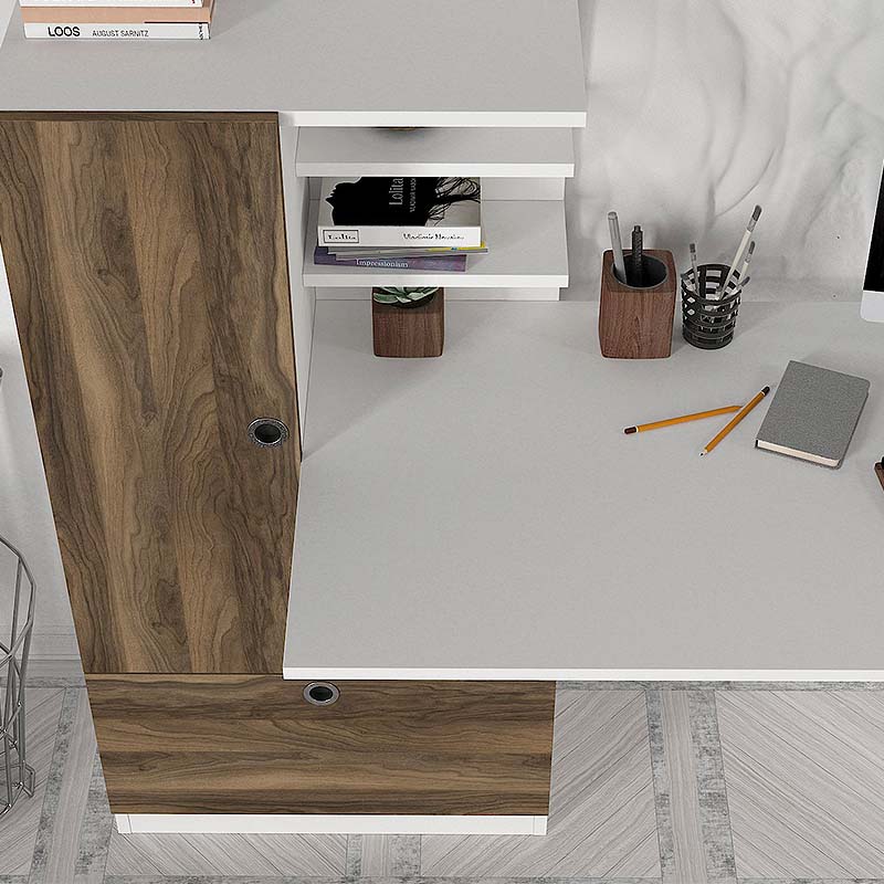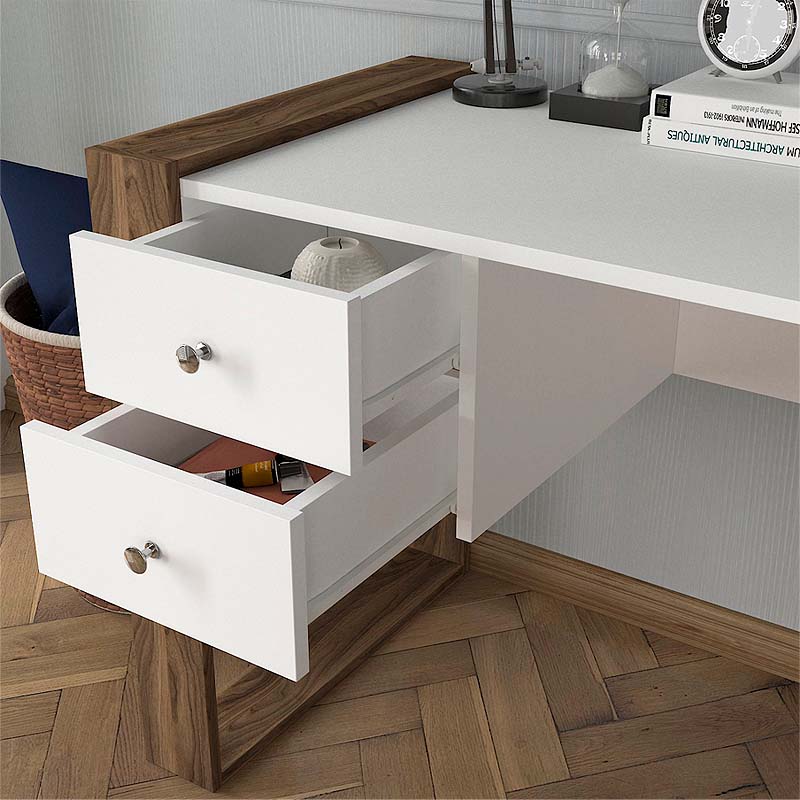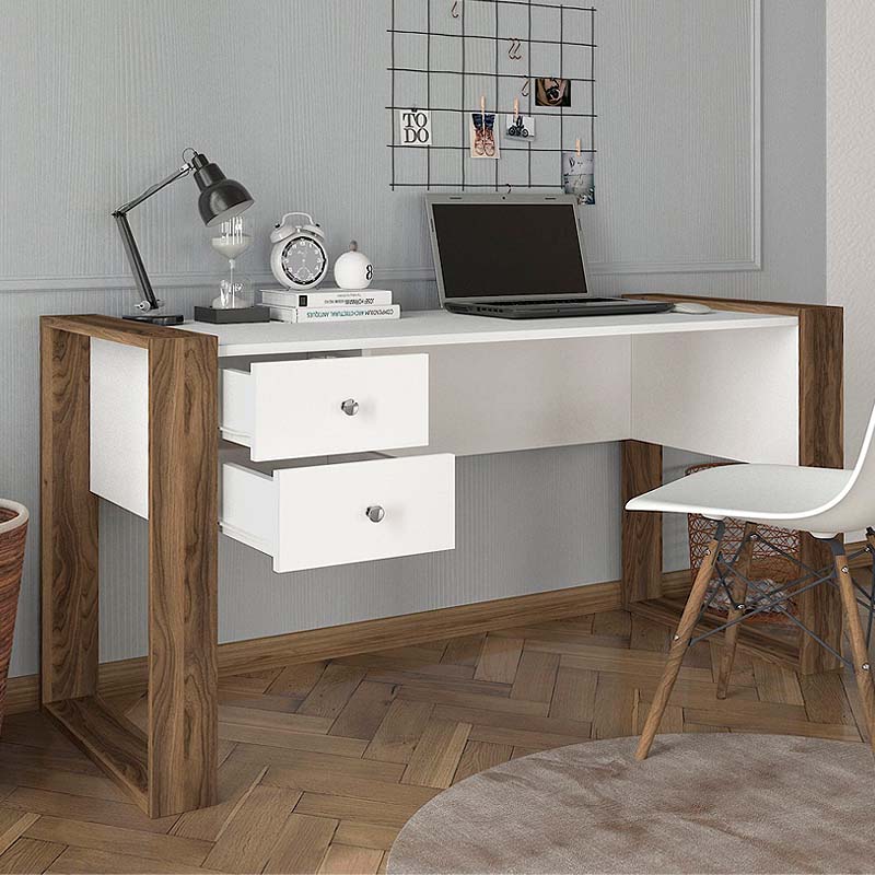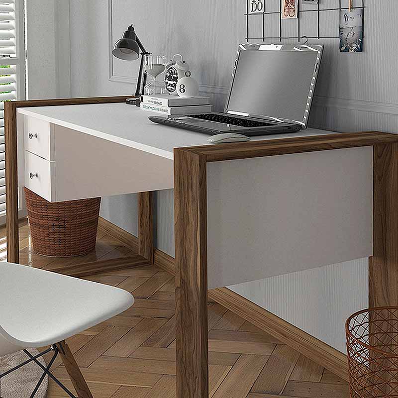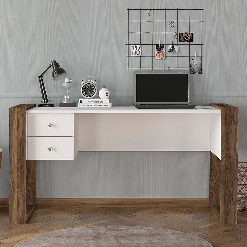 Γραφείο εργασίας Fernando Megapap χρώμα λευκό – καρυδί 158,4x60x72,2εκ.