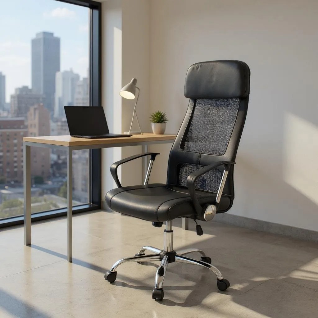 Καρέκλα γραφείου Ovis Megapap με τεχνόδερμα και ύφασμα Mesh χρώμα μαύρο 63x63x119/129εκ.