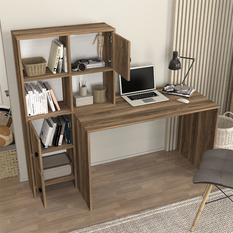 Γραφείο εργασίας Lesya Megapap αναστρέψιμο χρώμα καρυδί 159,2×59,6×141,2εκ.