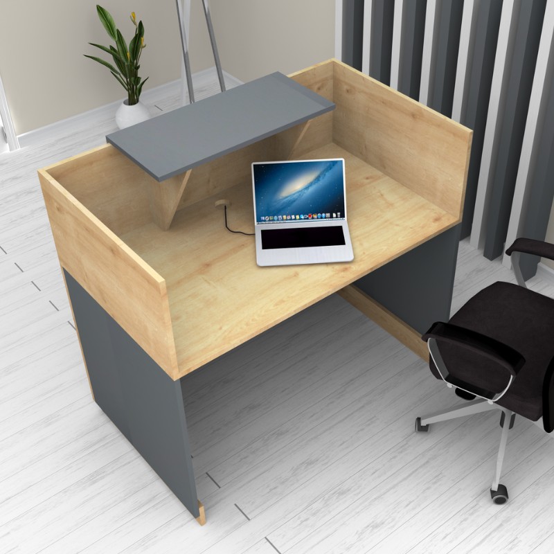 Γραφείο υποδοχής – reception Gemini Megapap χρώμα φυσικό οξιάς – ανθρακί 100x70x110εκ.