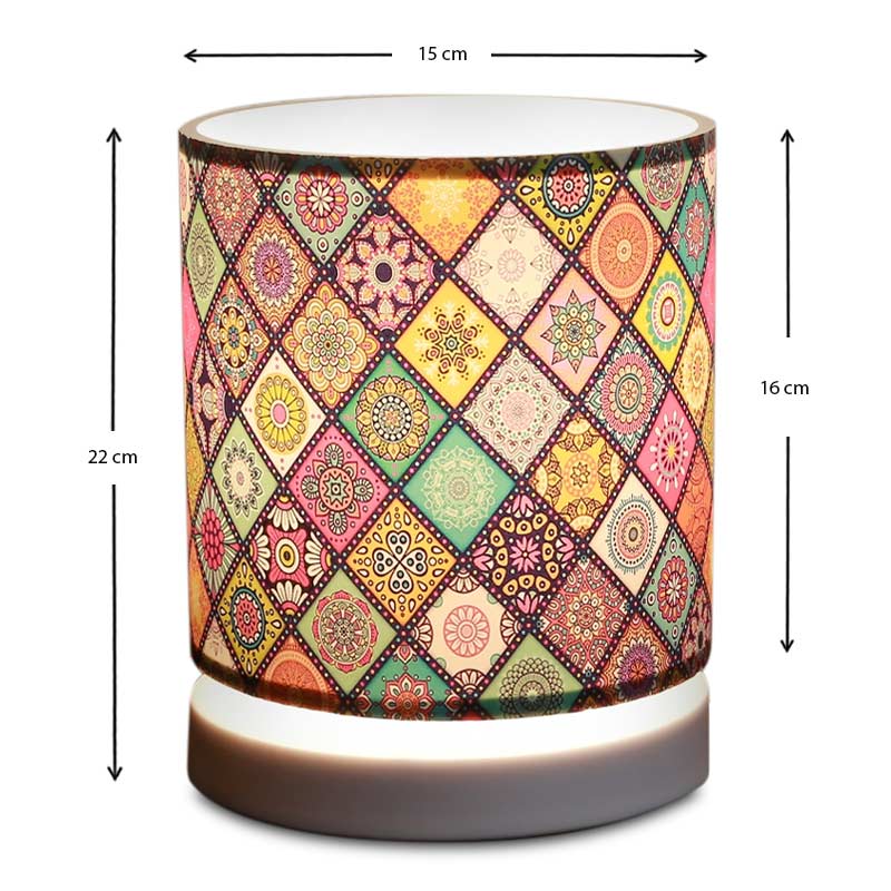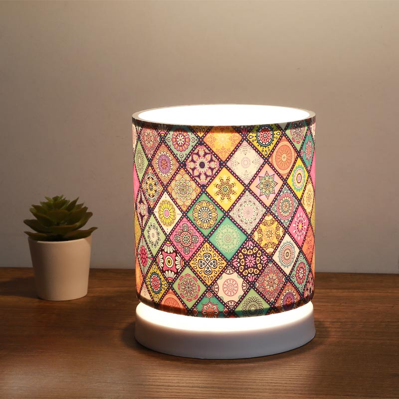 Φωτιστικό επιτραπέζιο Hassard Megapap ύφασμα/Mdf χρώμα πολύχρωμο/λευκό 15x16x22εκ.