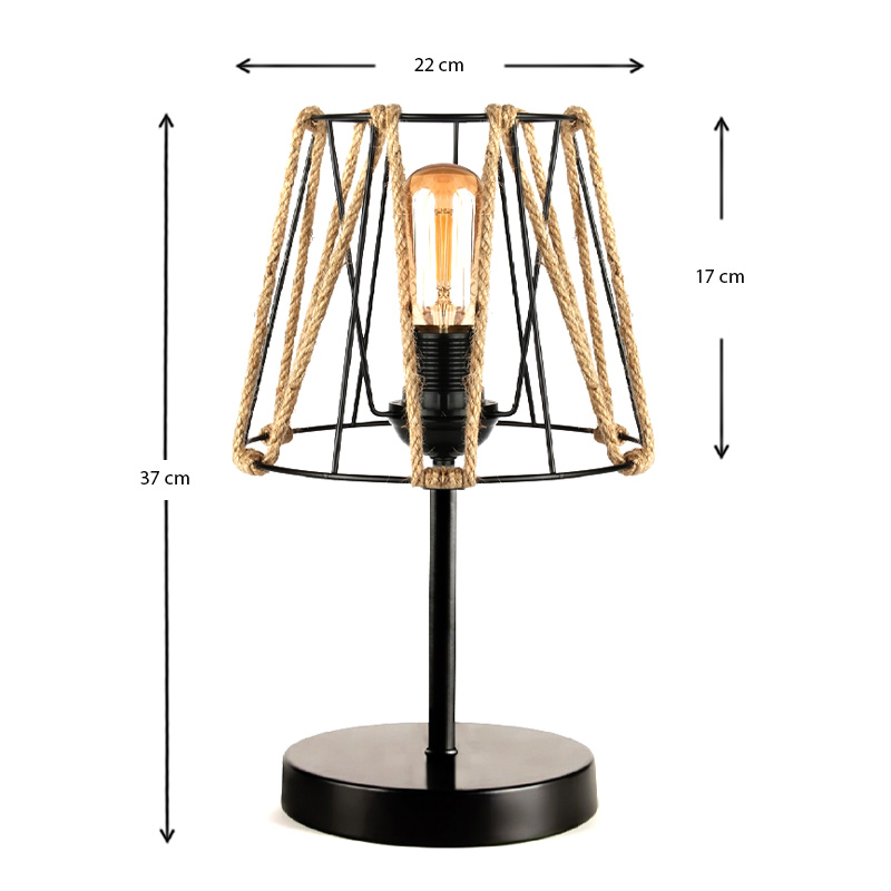Φωτιστικό επιτραπέζιο Clancy Megapap E27 σχοινί/μεταλλικό χρώμα μαύρο 22x17x37εκ.