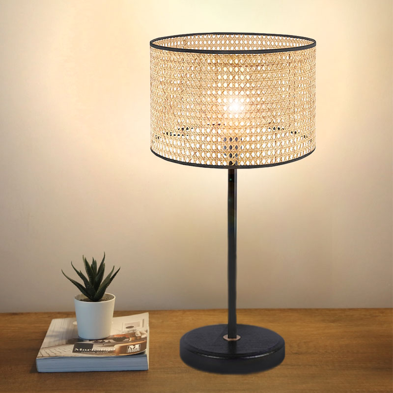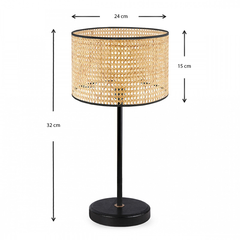 Φωτιστικό επιτραπέζιο Idaho Megapap E27 ρατάν – μεταλλικό χρώμα φυσικό – μαύρο Φ24×32εκ.