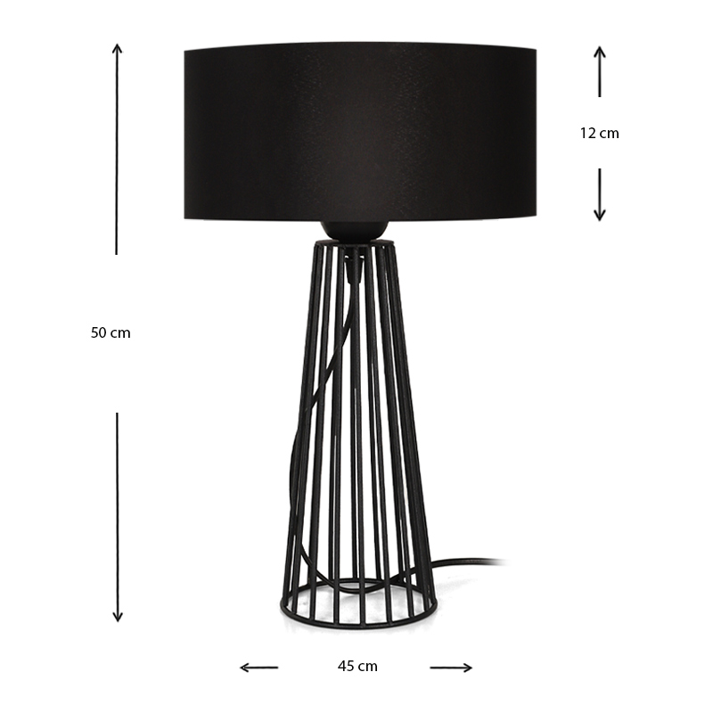 Φωτιστικό επιτραπέζιο Filip Megapap E27 μεταλλικό – υφασμάτινο χρώμα μαύρο 25x25x45εκ.