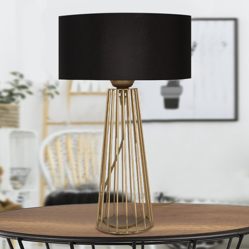 Φωτιστικό επιτραπέζιο Santo Megapap E27 ύφασμα Pvc χρώμα μαύρο – χρυσό Ø13×37εκ.
