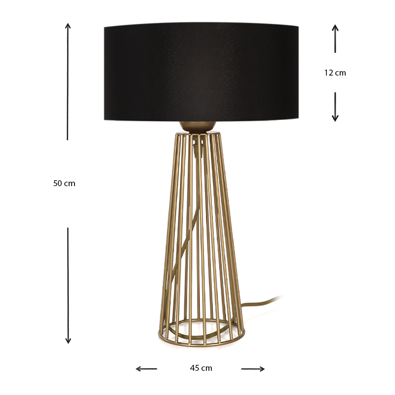 Φωτιστικό επιτραπέζιο Filip Megapap E27 μεταλλικό – υφασμάτινο χρώμα χρυσό – μαύρο 25x25x45εκ.