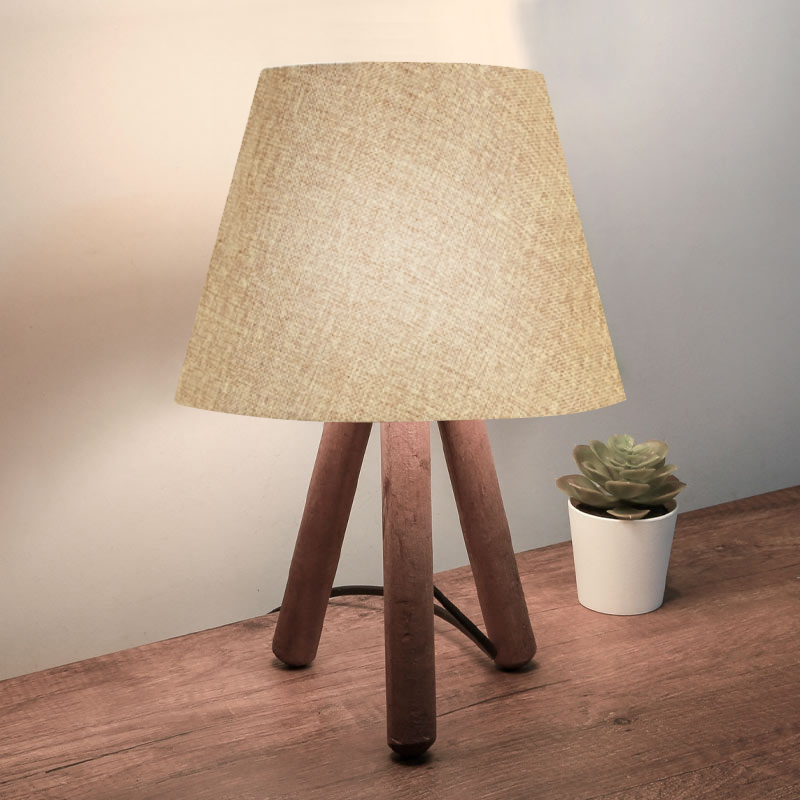 Φωτιστικό επιτραπέζιο Lander Megapap E27 ύφασμα Pvc – ξύλο χρώμα μπεζ – καφέ 22x17x33εκ.
