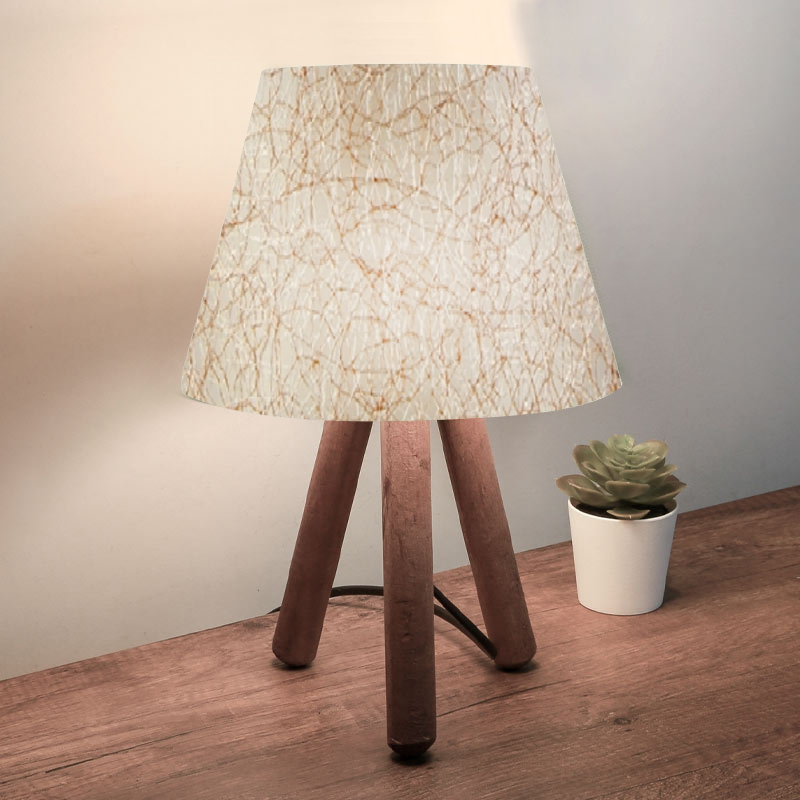Φωτιστικό επιτραπέζιο Pine Megapap E27 Mdf – ύφασμα Pvc χρώμα καρυδί – κρεμ Ø20×20εκ.