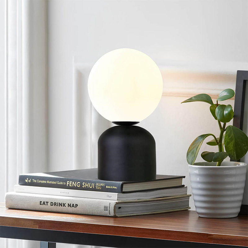 Φωτιστικό επιτραπέζιο Albus Megapap E14 μεταλλικό – γυάλινο χρώμα μαύρο – λευκό Ø13×28εκ.
