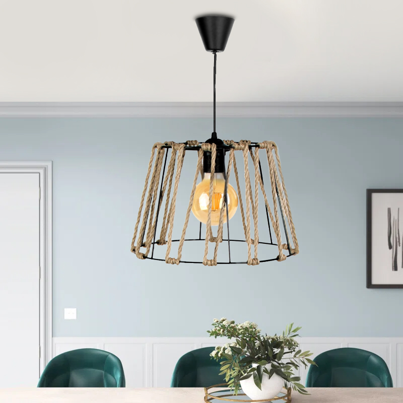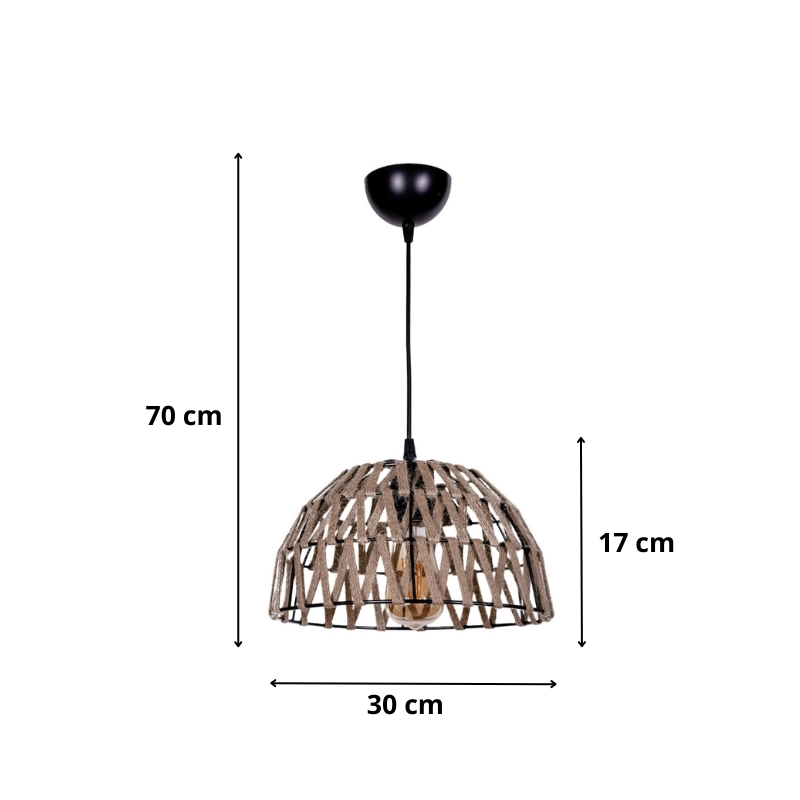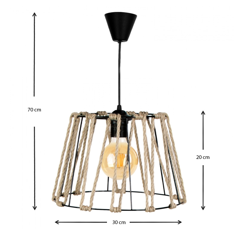 Φωτιστικό οροφής Andro Megapap E27 μεταλλικό – σχοινί μονόφωτο χρώμα μαύρο – φυσικό Ø30×70εκ.
