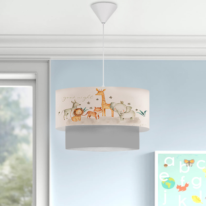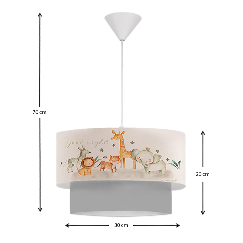 Φωτιστικό οροφής Goofy Megapap υφασμάτινο μονόφωτο με χαρούμενα ελεφαντάκια 30x20x70εκ.