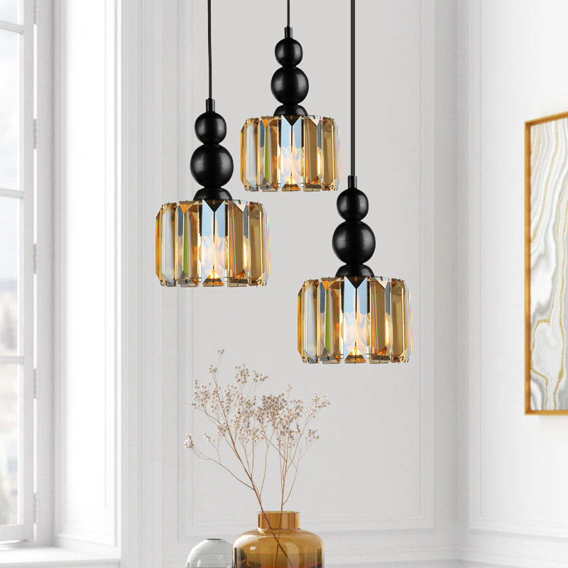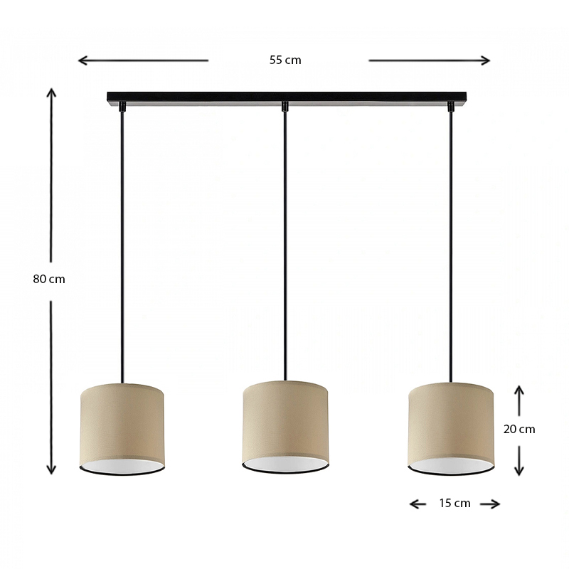 Φωτιστικό οροφής Rosie Megapap υφασμάτινο τρίφωτο χρώμα γκρι/μαύρο 15x15x90εκ.