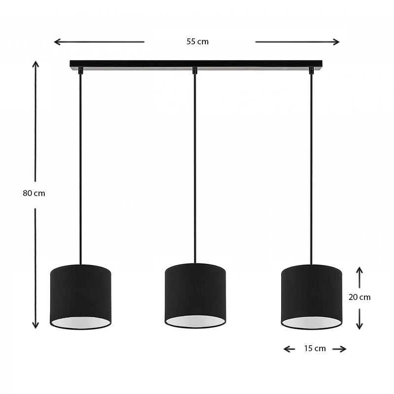 Φωτιστικό οροφής Rosie Megapap υφασμάτινο τρίφωτο χρώμα μαύρο 15x15x90εκ.