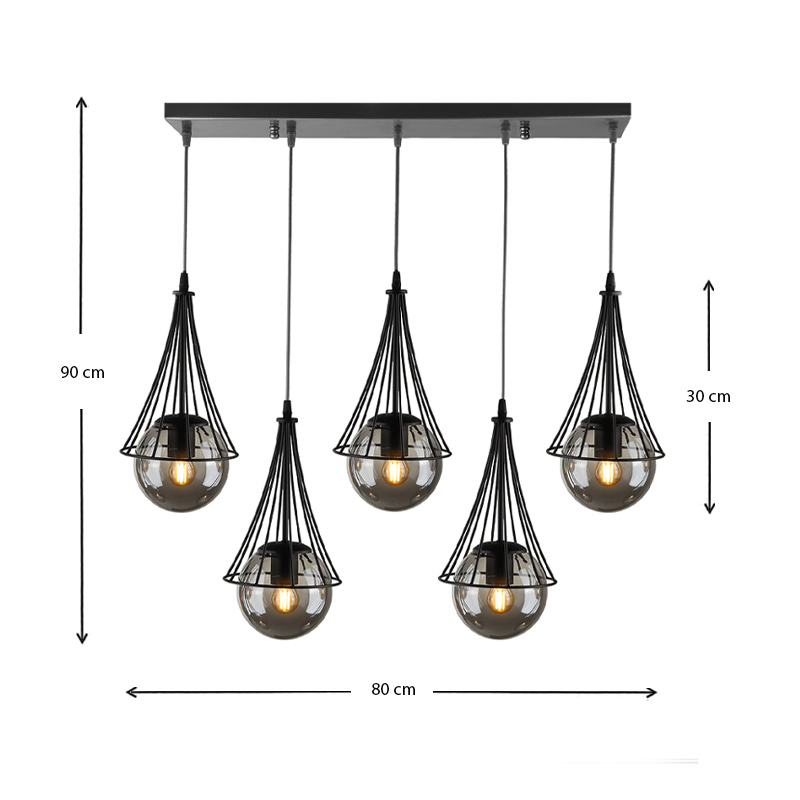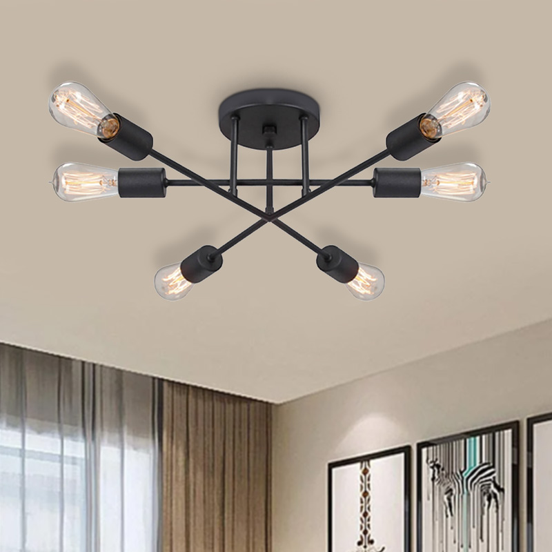 Φωτιστικό οροφής Samba Megapap E27 μεταλλικό εξάφωτο χρώμα μαύρο Ø68×50εκ.