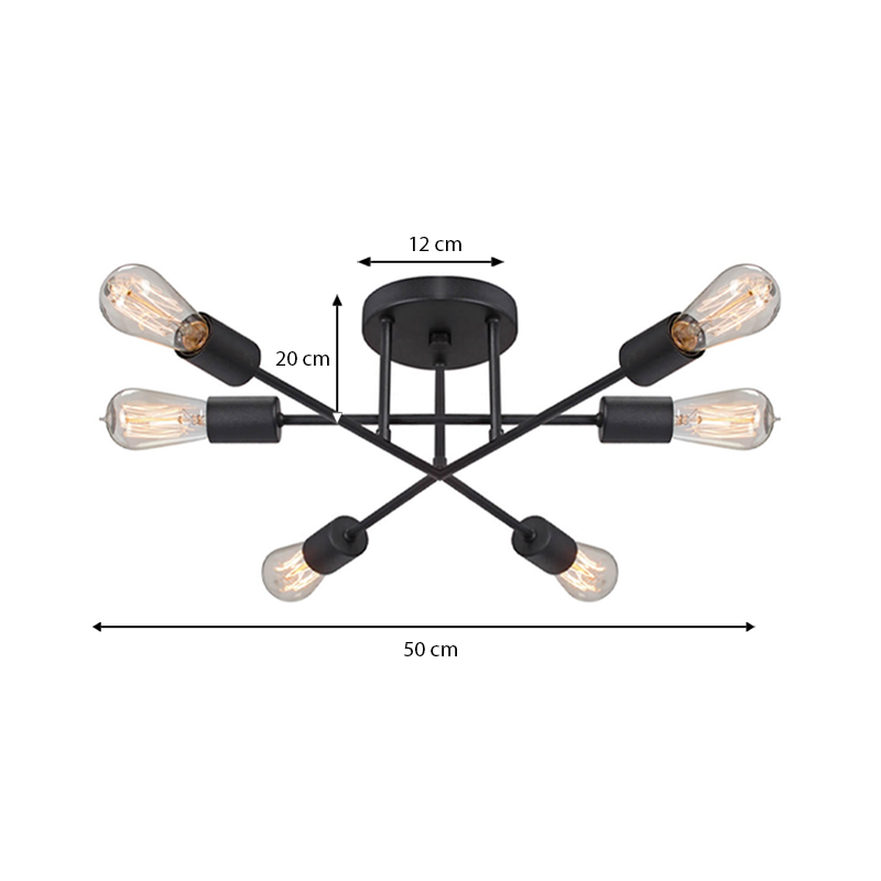 Φωτιστικό οροφής Uriela Megapap E27 μεταλλικό εξάφωτο χρώμα μαύρο 64x64x29εκ.