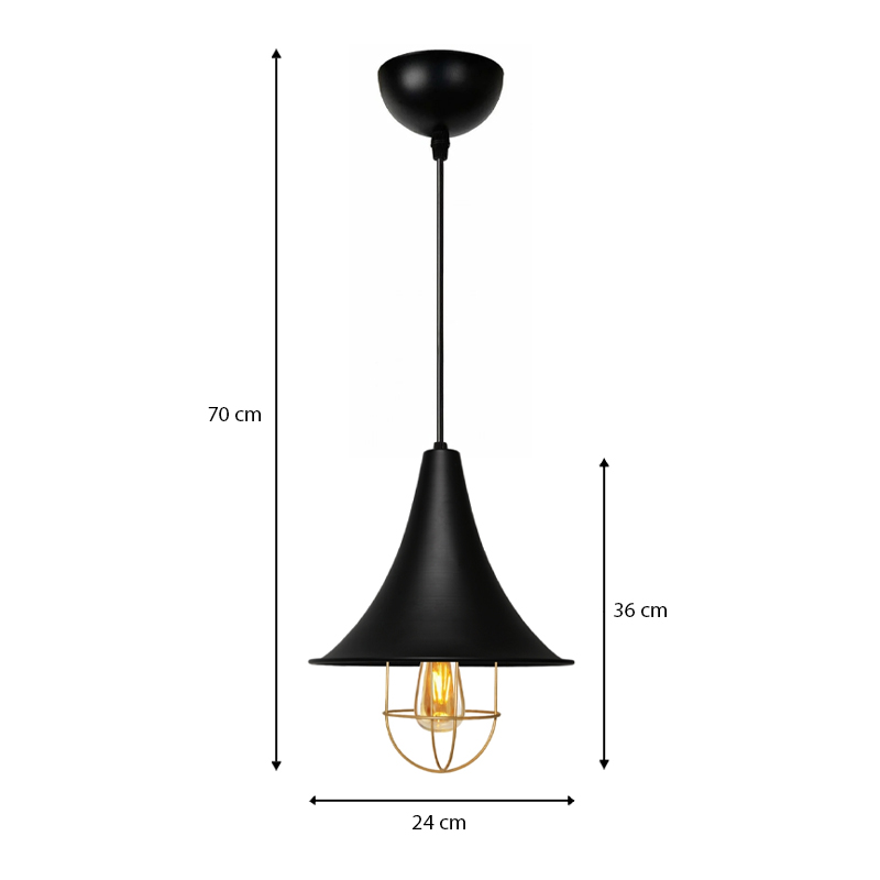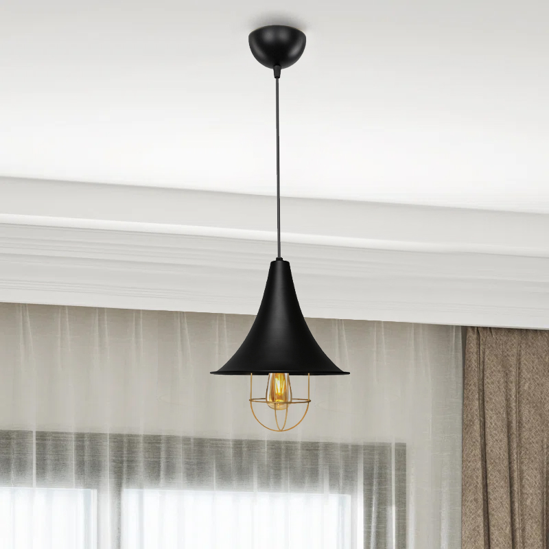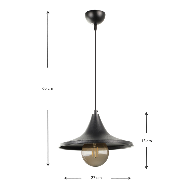 Φωτιστικό οροφής Farac Megapap E27 μεταλλικό μονόφωτο χρώμα μαύρο Ø50×31/111εκ.