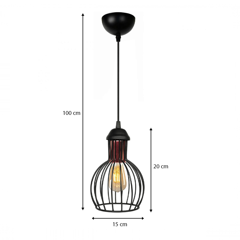 Φωτιστικό οροφής Gerek Megapap E27 μεταλλικό μονόφωτο χρώμα μαύρο Ø34,5×100εκ.