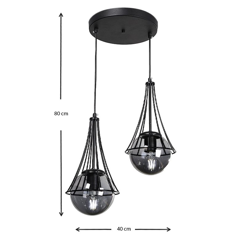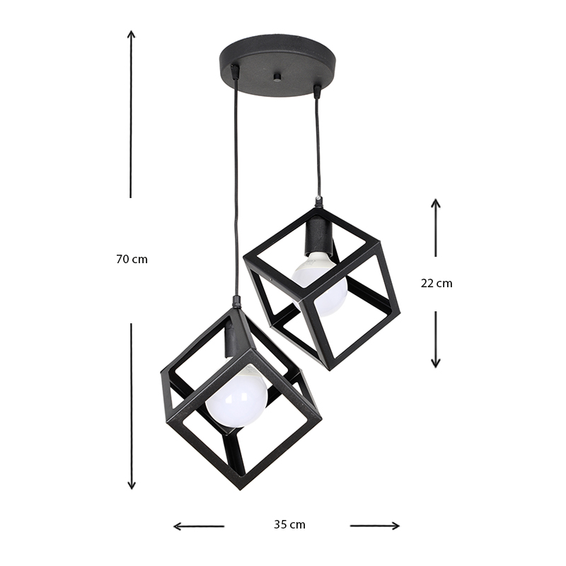 Φωτιστικό οροφής Nura Megapap E27 μεταλλικό δίφωτο χρώμα μαύρο 40x40x70εκ.