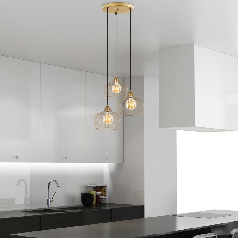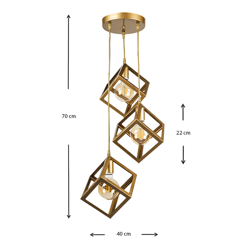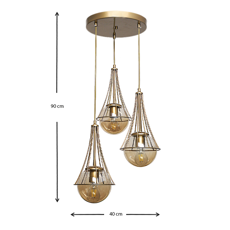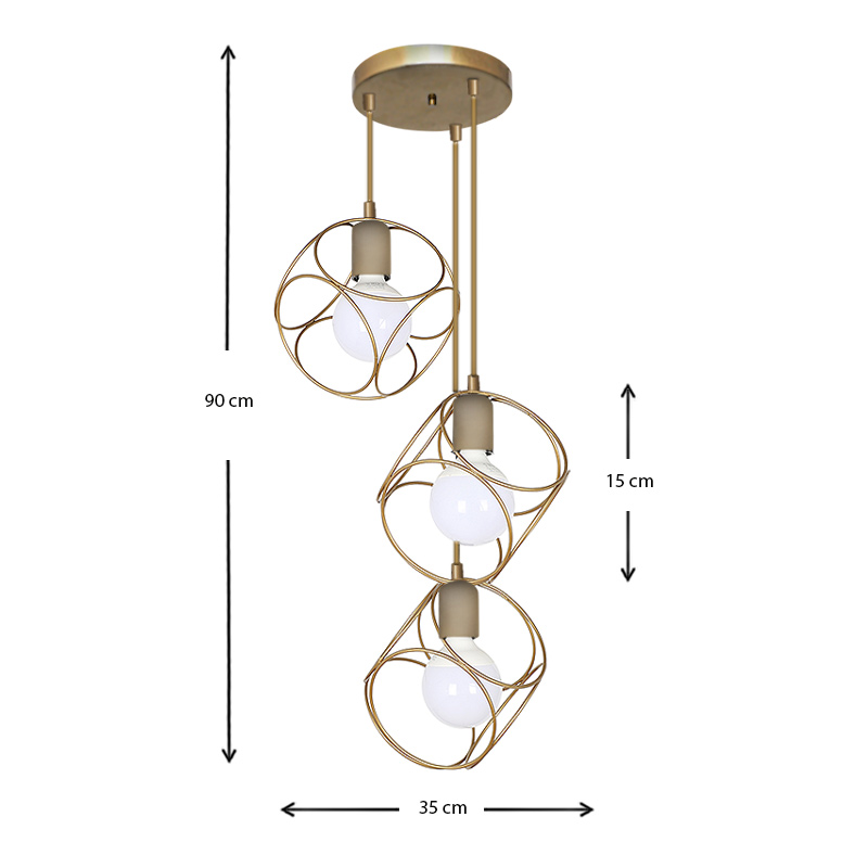Φωτιστικό οροφής Alvaro Megapap E27 μεταλλικό τρίφωτο χρώμα χρυσό 56x40x121εκ.