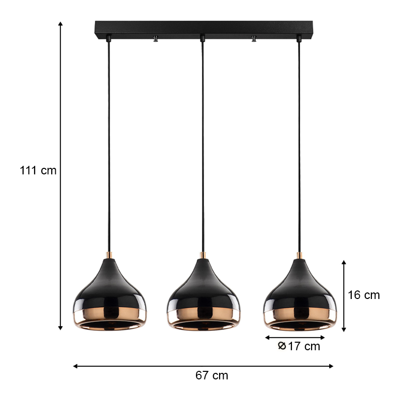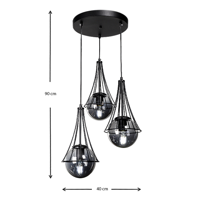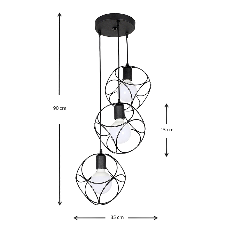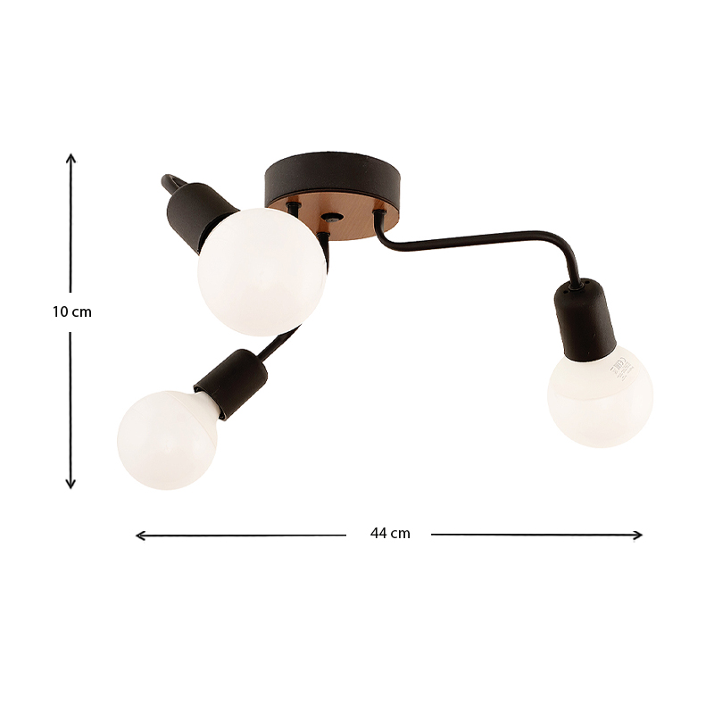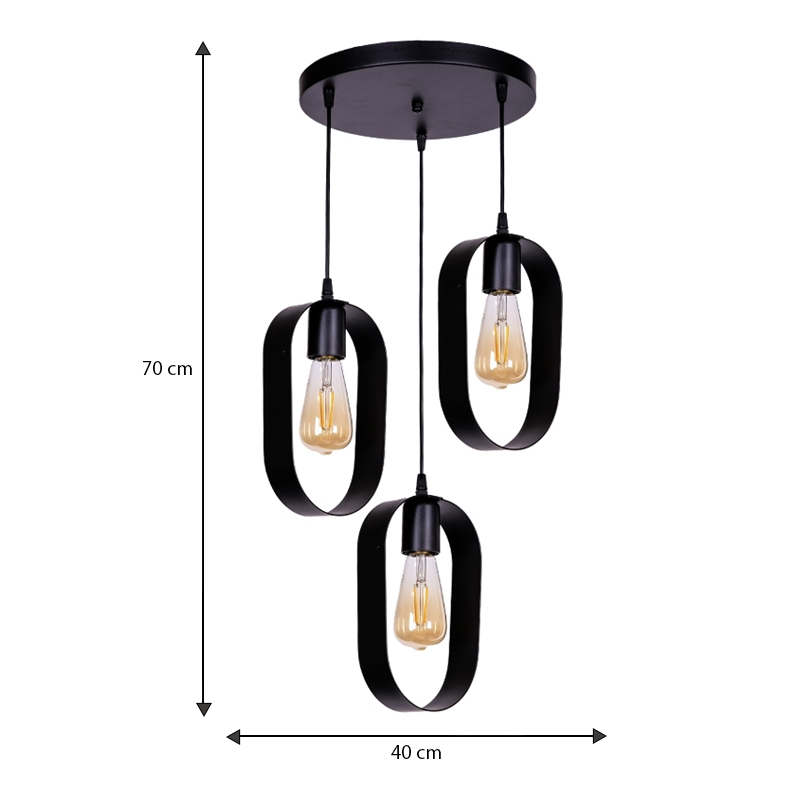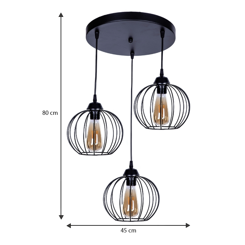 Φωτιστικό οροφής Lina Megapap E27 μεταλλικό τρίφωτο χρώμα μαύρο 45x40x80εκ.