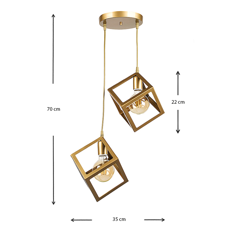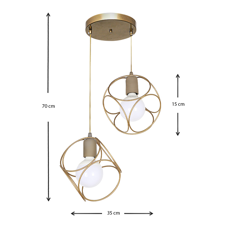 Φωτιστικό οροφής Chavi Megapap E27 μεταλλικό δίφωτο χρώμα χρυσό 40x40x80εκ.
